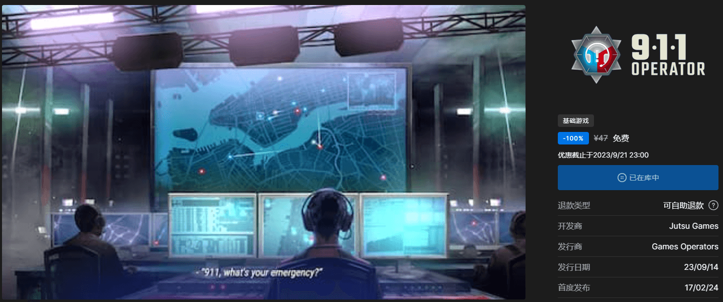 趣奇资源网本次为大家分享的是Epic免费喜+1《911接线员》